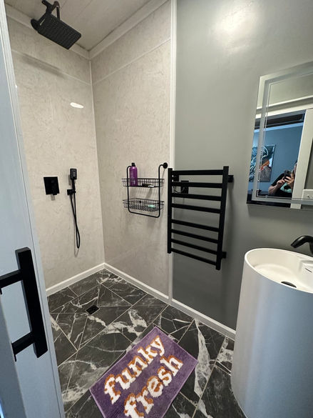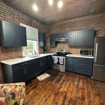 Spacious 1 room loft, open floor plan. Full kitchen, king Murphy bed and pull out sleeper sofa. Wet shower has heated floors and heated towel rack. Dining nook and spacious outdoor deck in the heart of downtown Pittsboro!